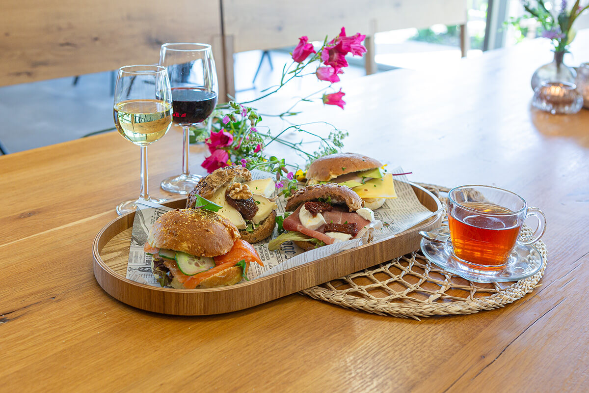 Naast koffie en gebak kun je ook genieten van een heerlijke lunch, een glas wijn of een speciaalbiertje, geserveerd met een vers bereide hap uit eigen keuken.